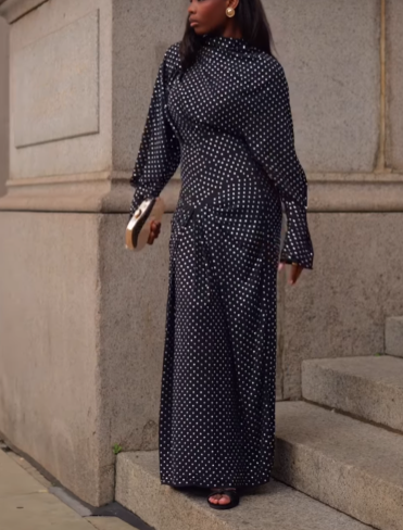 Rhinestone Detail Draped Neck Hard Shoulder Open Back Long Dress