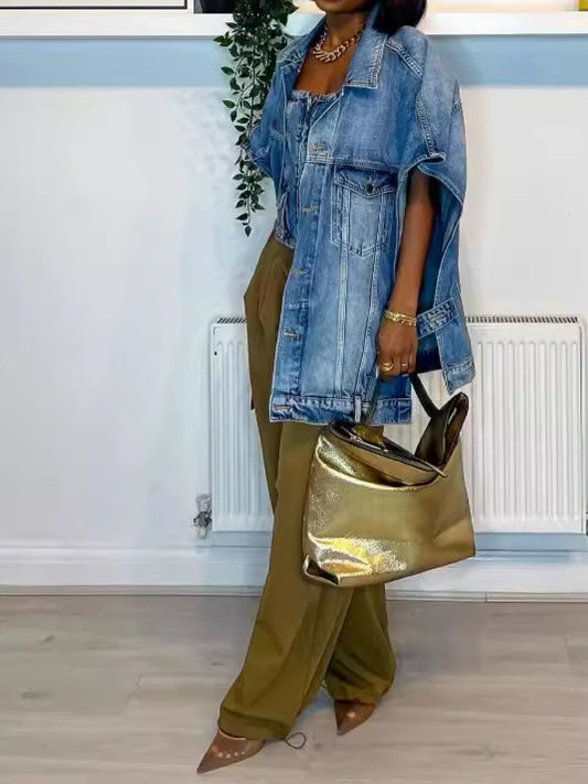 Solid Loose Lantern Sleeve Cardigan Shirt Jacket