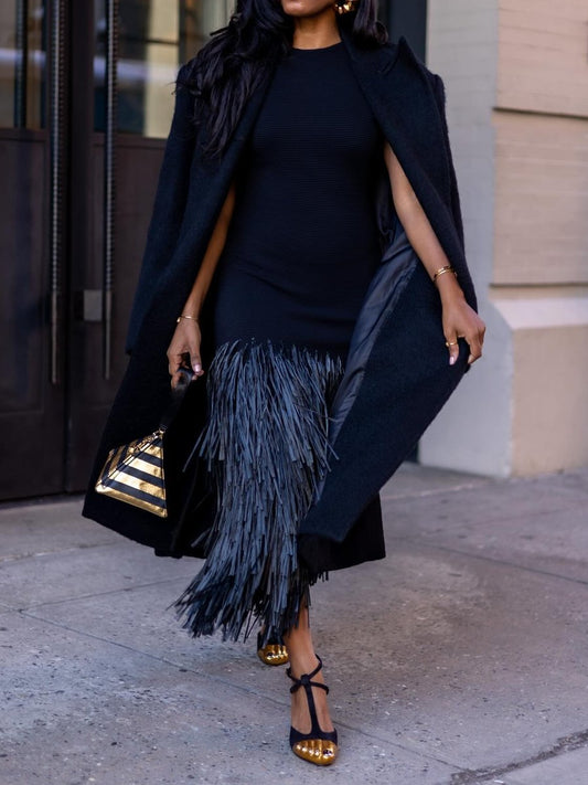 PromotionTurtle Neck Ruffled Hem Two Pieces Dress