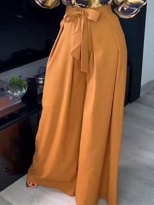 PromotionHigh-Waist Lace-Up Wide-Leg Pants