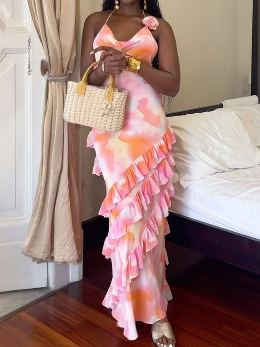 In offertaSexy Deep V Neck Ruffled Sling Dress