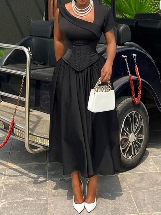 In offertaRed Coral Bead Pendant Laminated Skirt Dress