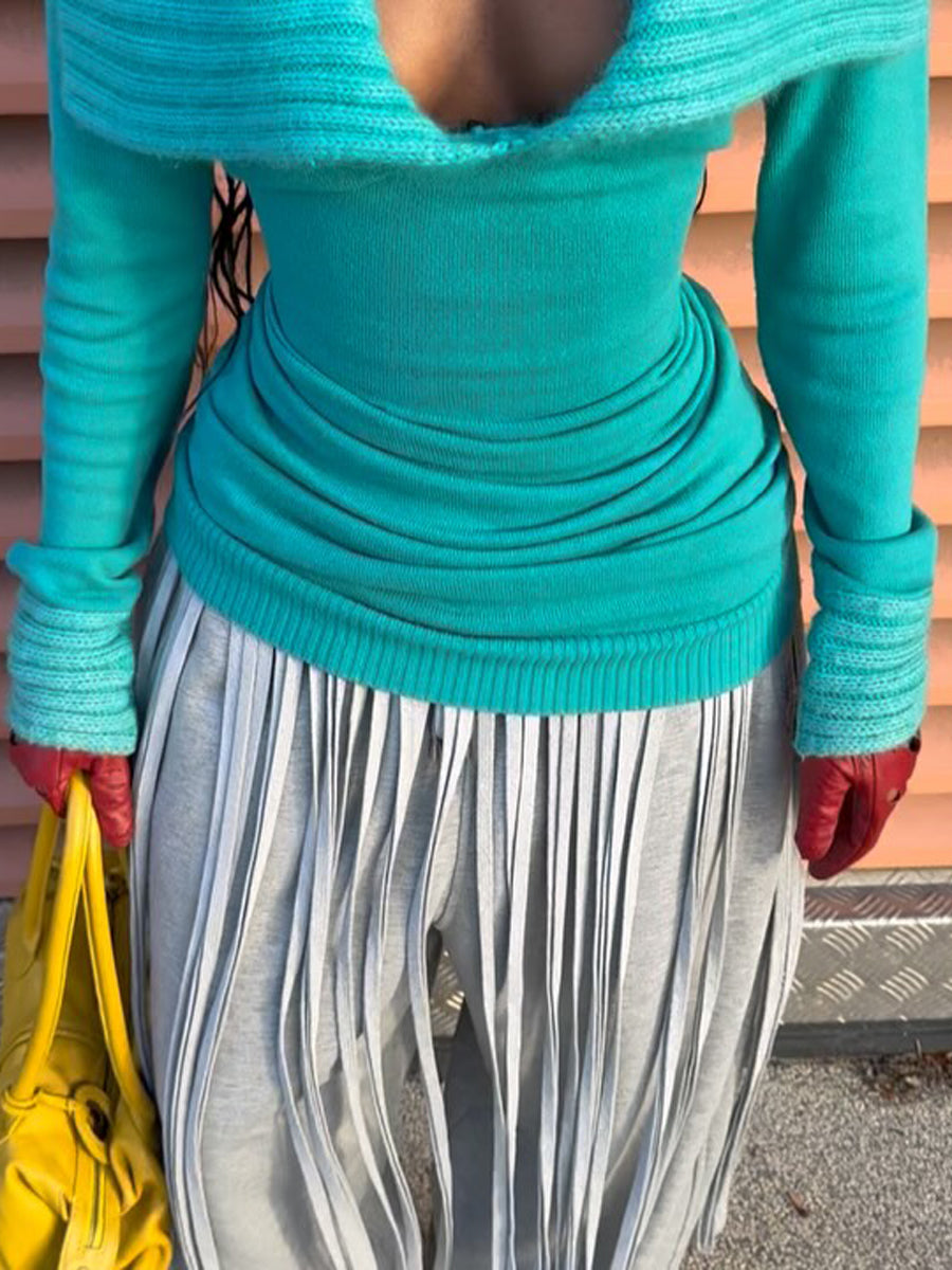 Deep V Neck Patchwork Knitted Sweater
