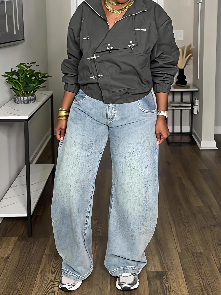 Metal Button Collared Slant Placket Soft Warm Coat